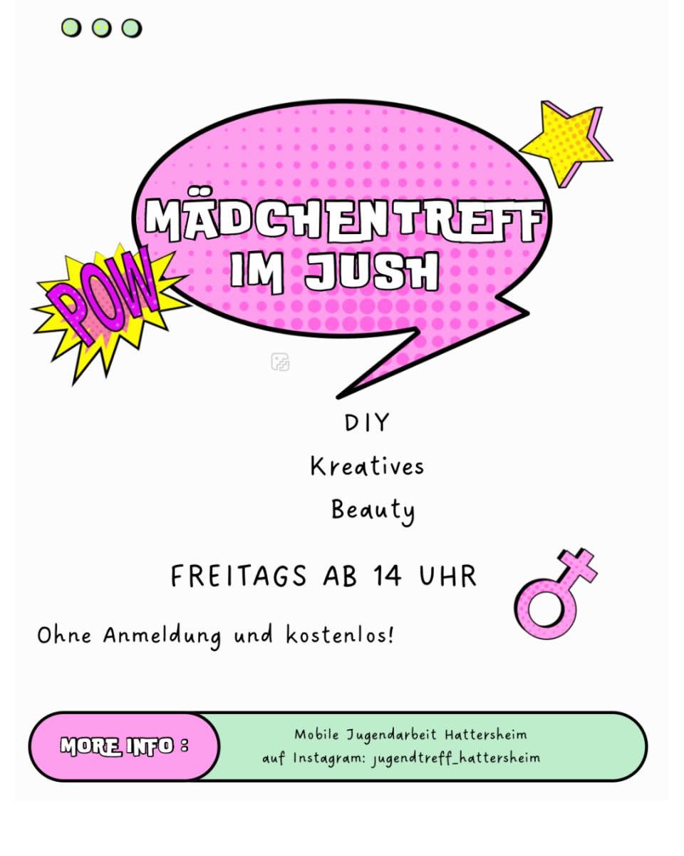 Jeden Freitag bieten wir einen Mädchentreff in unseren Räumlichkeiten an. Ob malen, basteln oder DIY-Projekte- hier ist Raum für deine Ideen! Wir lassen uns von aktuellen Themen, Jahreszeiten oder einfach unserer Stimmung inspirieren. Bring deine Ideen mit!
